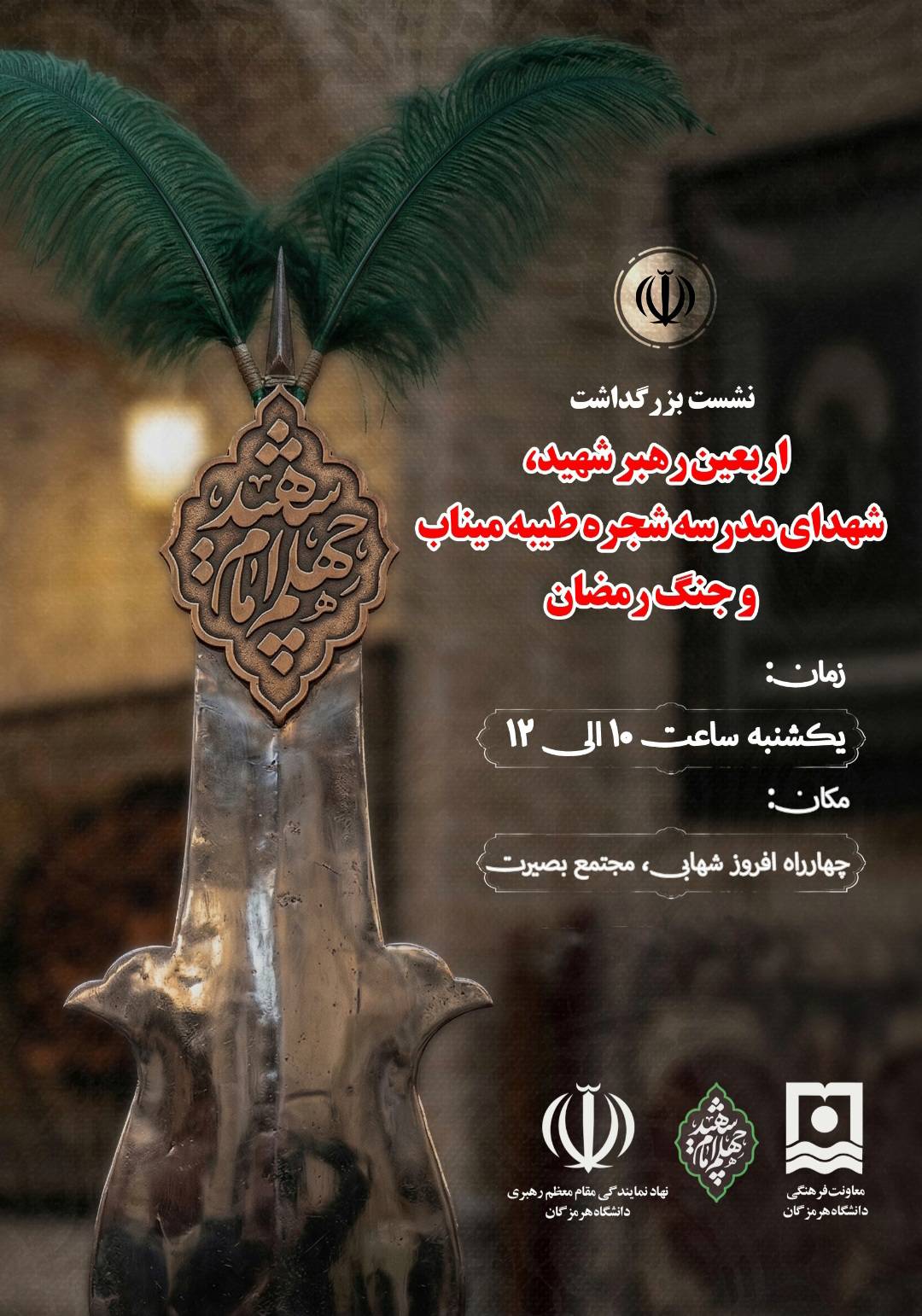 دعوت به حضور در مراسم بزرگداشت «اربعین رهبر شهید، شهدای مدرسه شجره طیبه میناب و حماسه رمضان»
