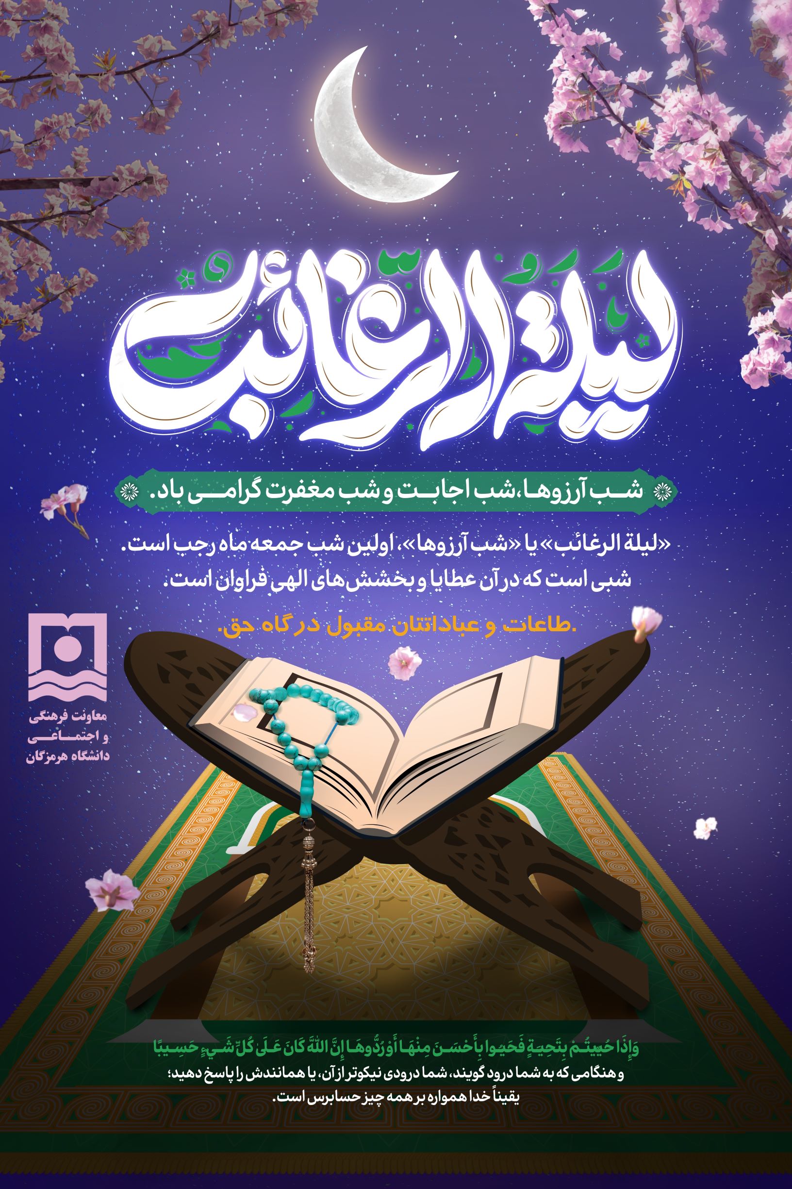 یادداشت معاون فرهنگی و اجتماعی دانشگاه هرمزگان به‌مناسبت فرا رسیدن اولین شب جمعه ماه رجب: