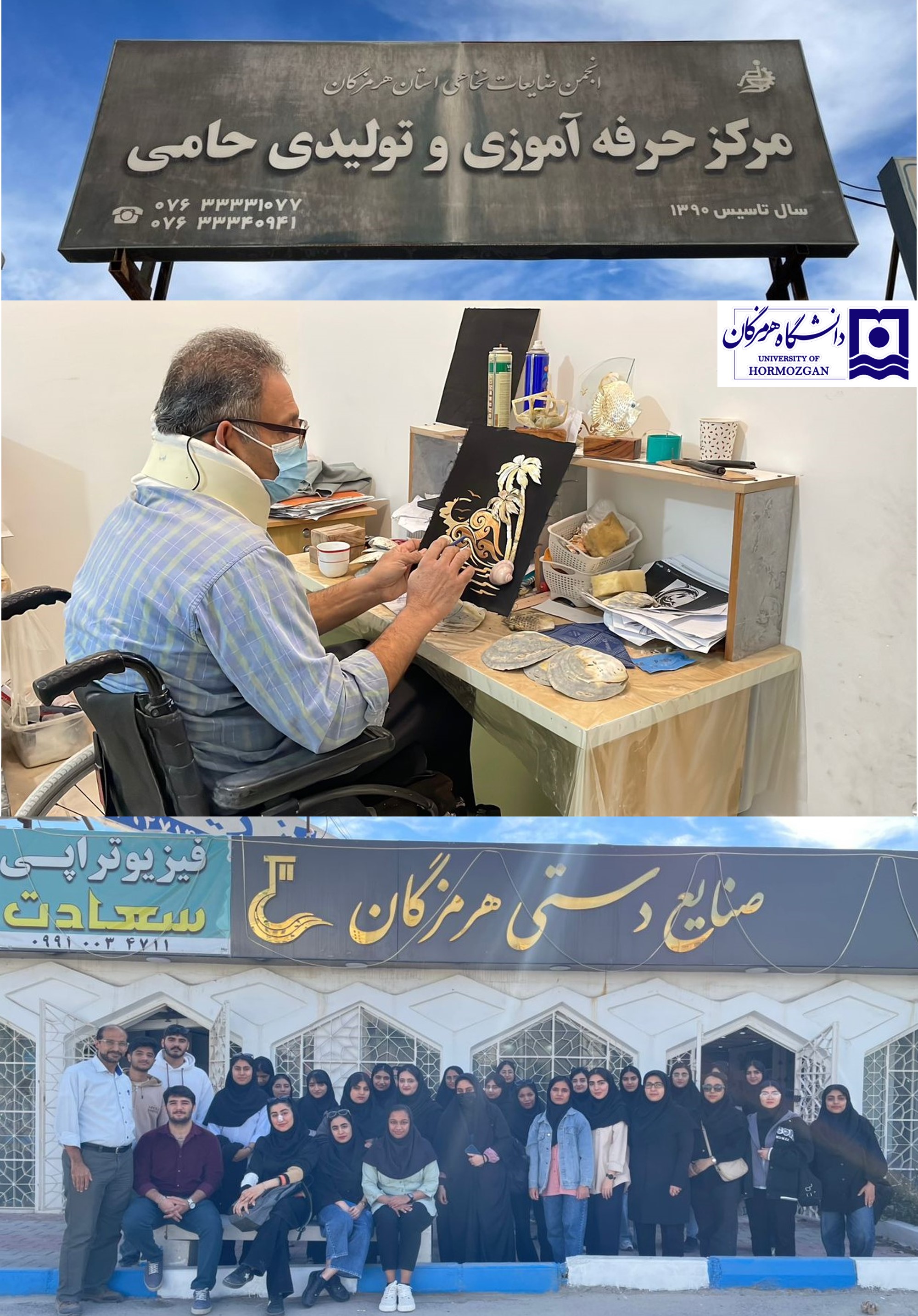 بازدید دانشجویان ریاضی و شیمی دانشگاه هرمزگان از مرکز حرفه‌آموزی و تولیدی «حامی» با محوریت کارآفرینی اجتماعی