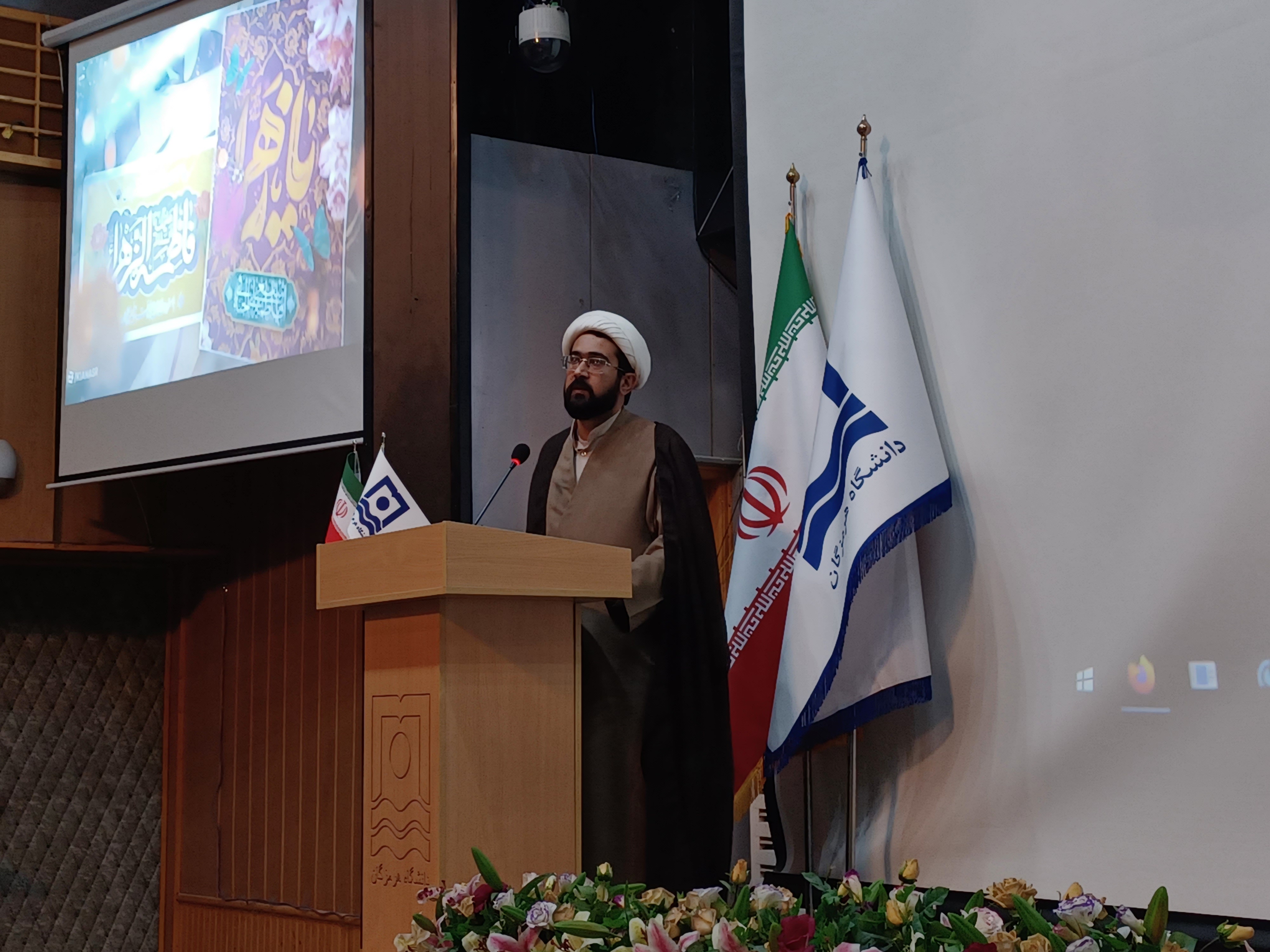 در بخش بعدی برنامه، آقای مهندس آشام که به نمایندگی از رئیس دانشگاه هرمزگان در این مراسم حضور داشتند، با حضور در جایگاه، ضمن تبریک این مناسبت فرخنده، بر اهمیت تکریم مقام زن و مادر در جامعه اسلامی تأکید کردند و نقش زنان را در تعالی فرهنگی، اخلاقی و اجتماعی جامعه بسیار ارزشمند دانستند.