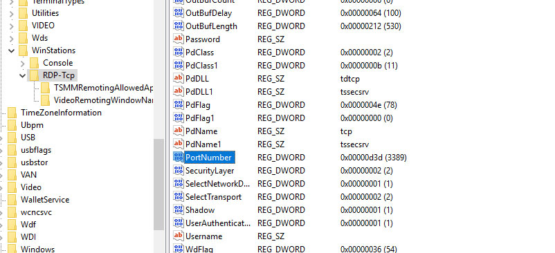 HKEY_LOCAL_MACHINE\System\CurrentConrolSet\Control\TerminalServer\WinStations\RDP-Tcp